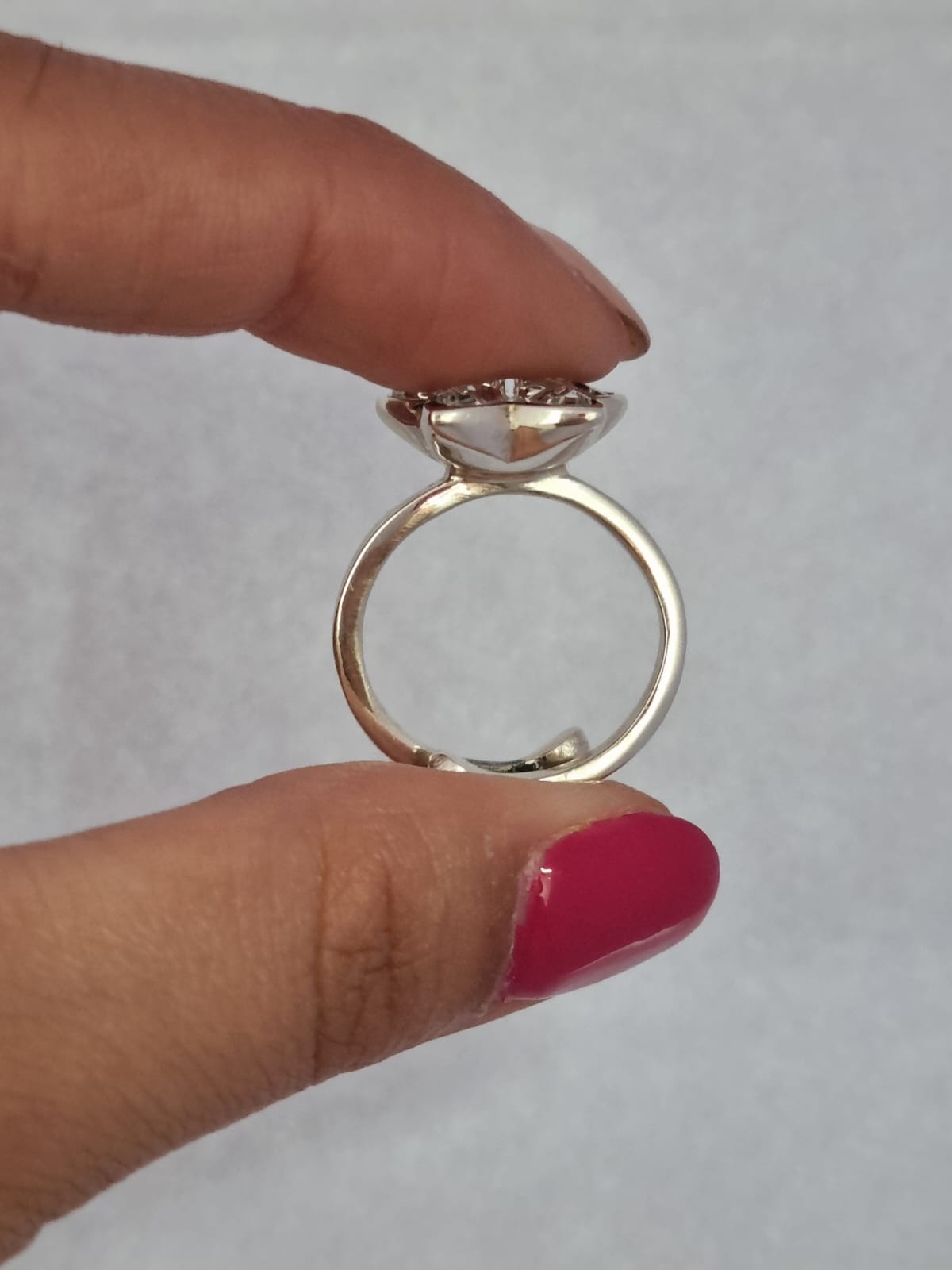 Descripción: Anillo de plata modelo con piedra diseño circulo de cristal europeo el cual esta semi engarzado.