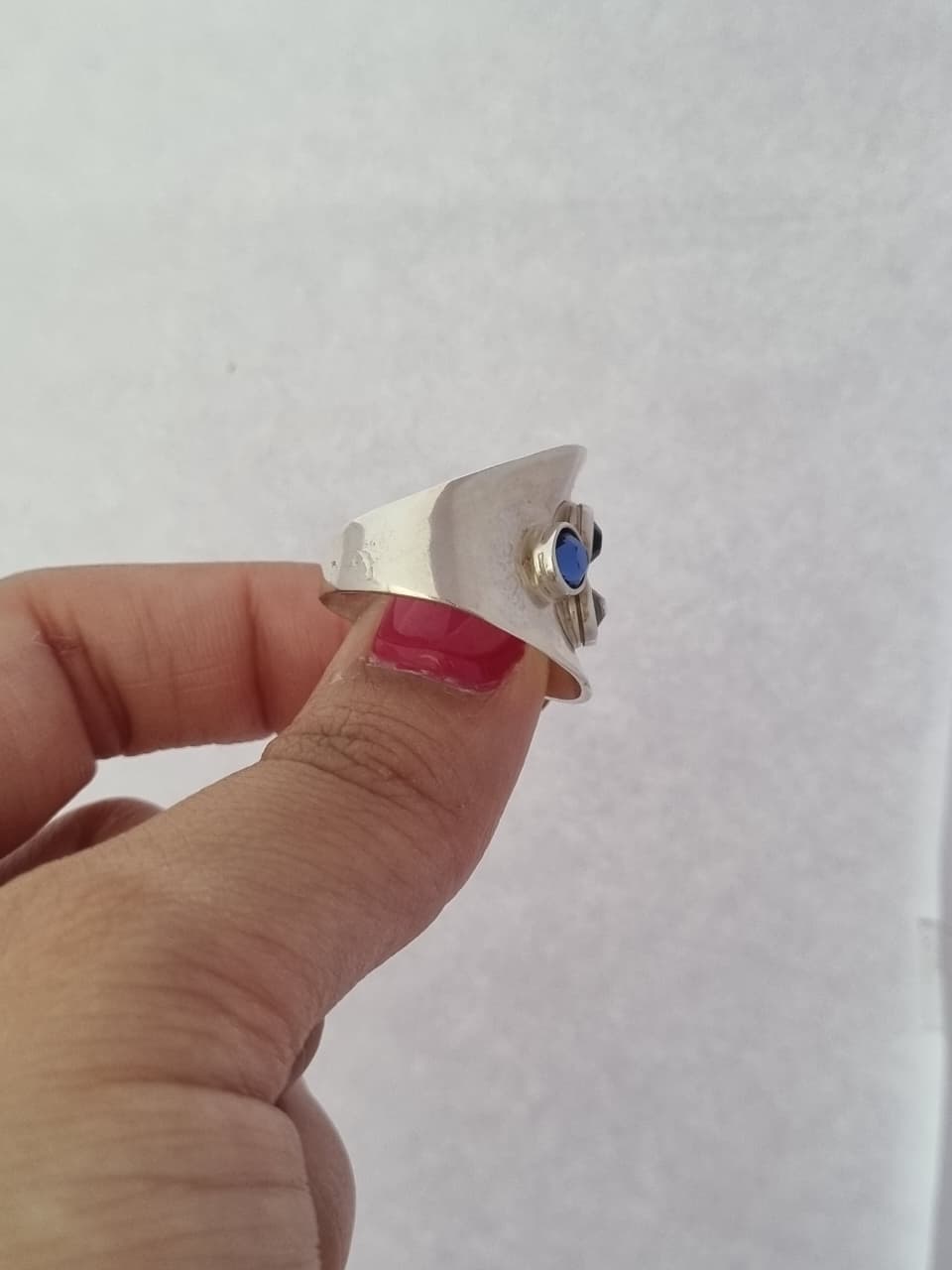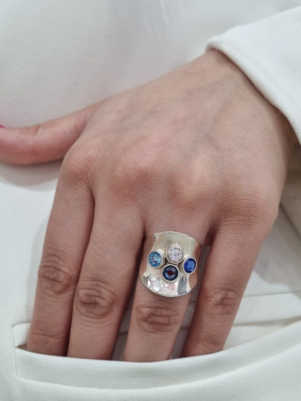 Descripción: Anillo de plata modelo ancho con piedras de cristal europeo las cuales estan engarzadas.