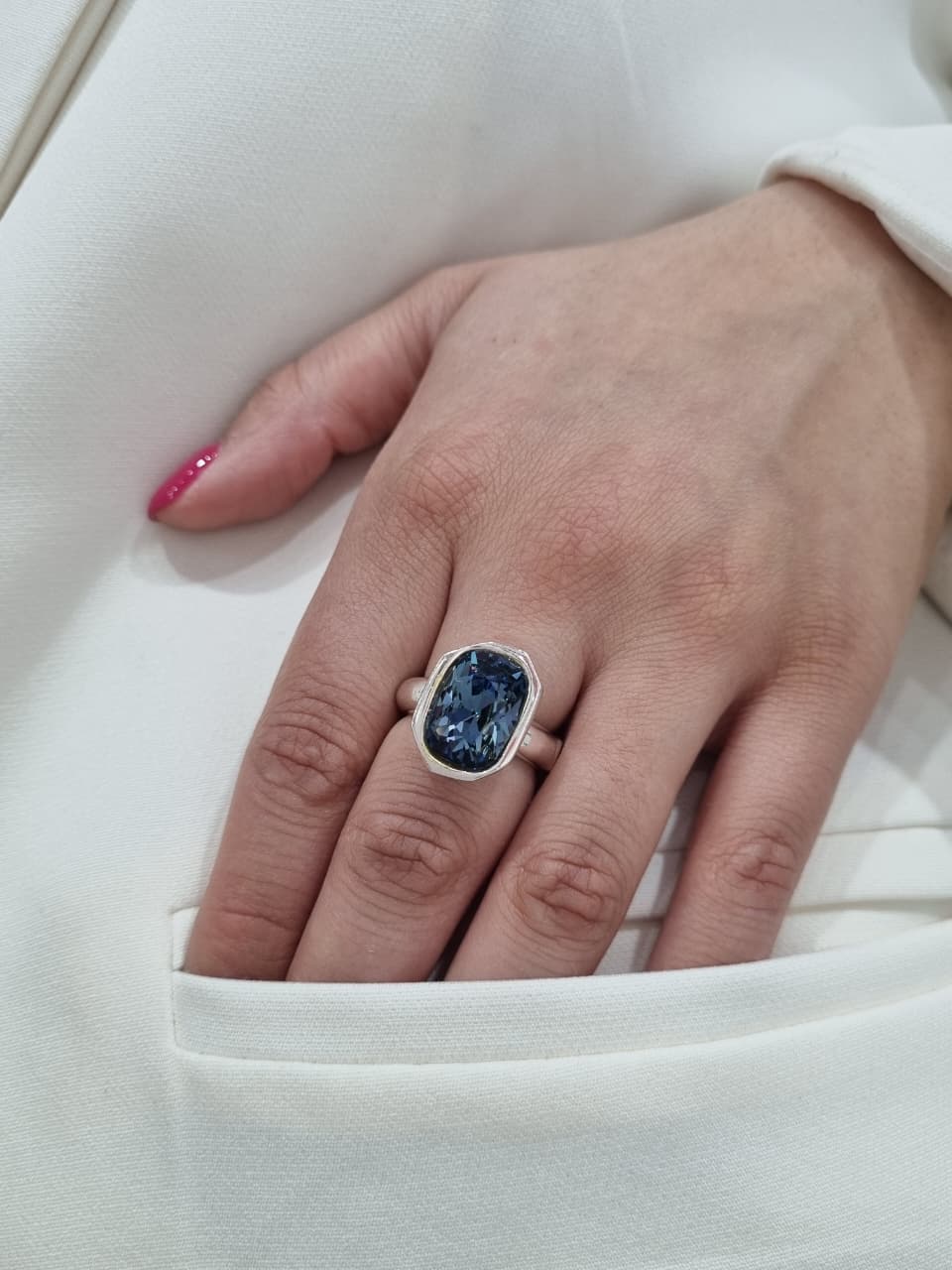 Descripción: Anillo de plata modelo con piedra diseño rectangular la cual es de cristal europeo y esta engarzada.