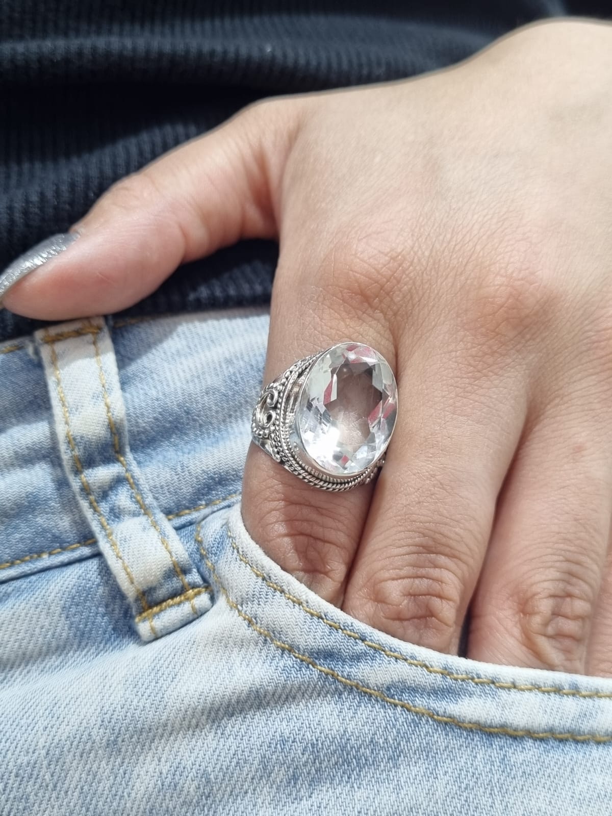 Descripcion: Anillo con piedra central cubics color blanco el cual esta engarzado.