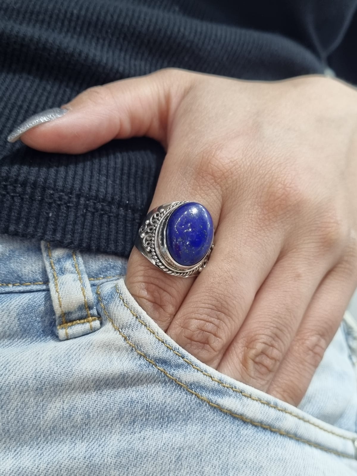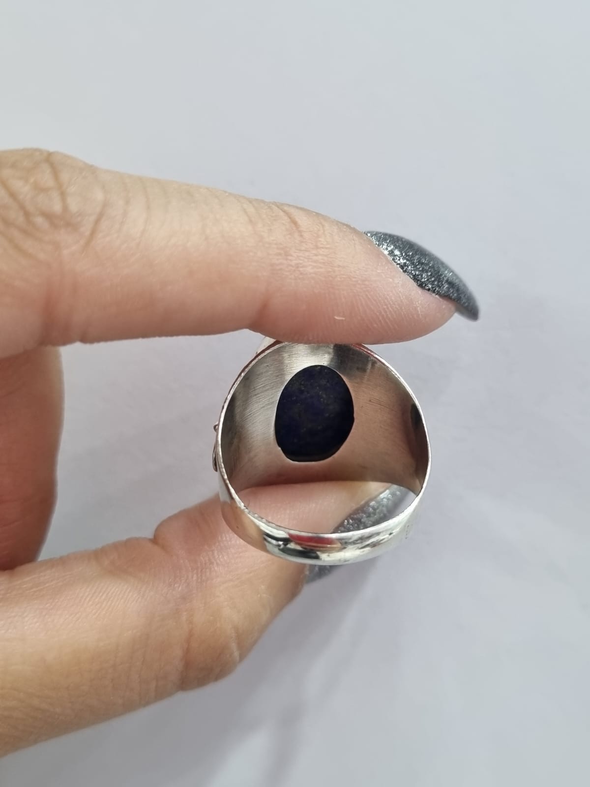 Descripcion: Anillo con piedra central lapislázuli la cual esta engarzada.