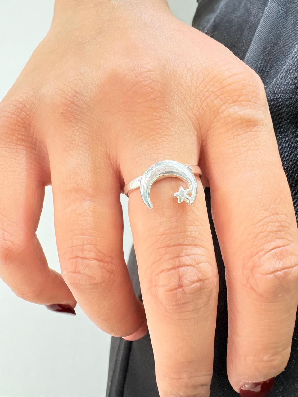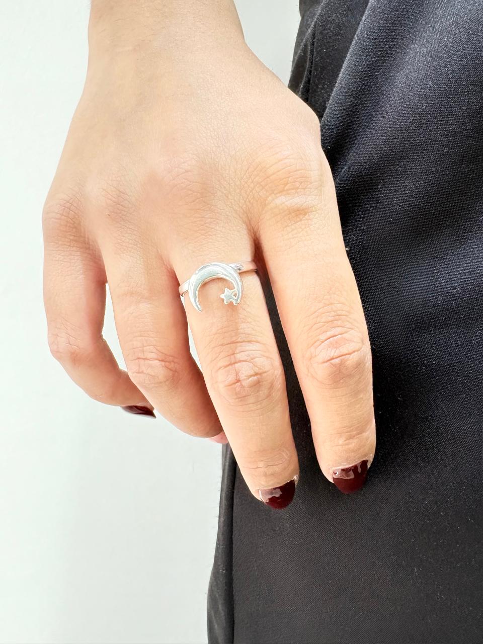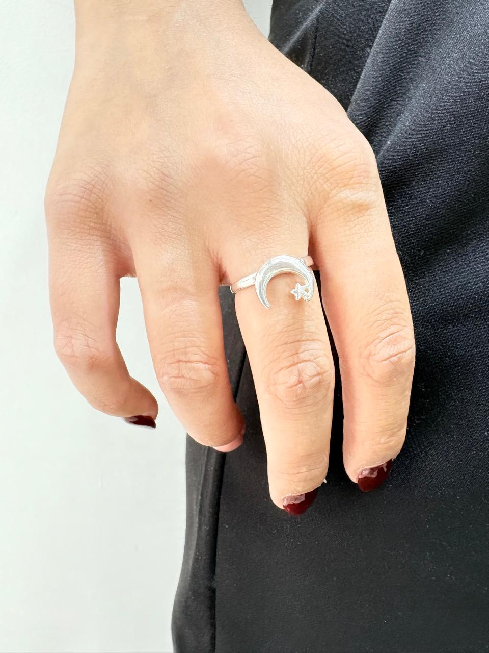 Descripcion: Anillo de plata modelo luna invertida con estrella chiquita.