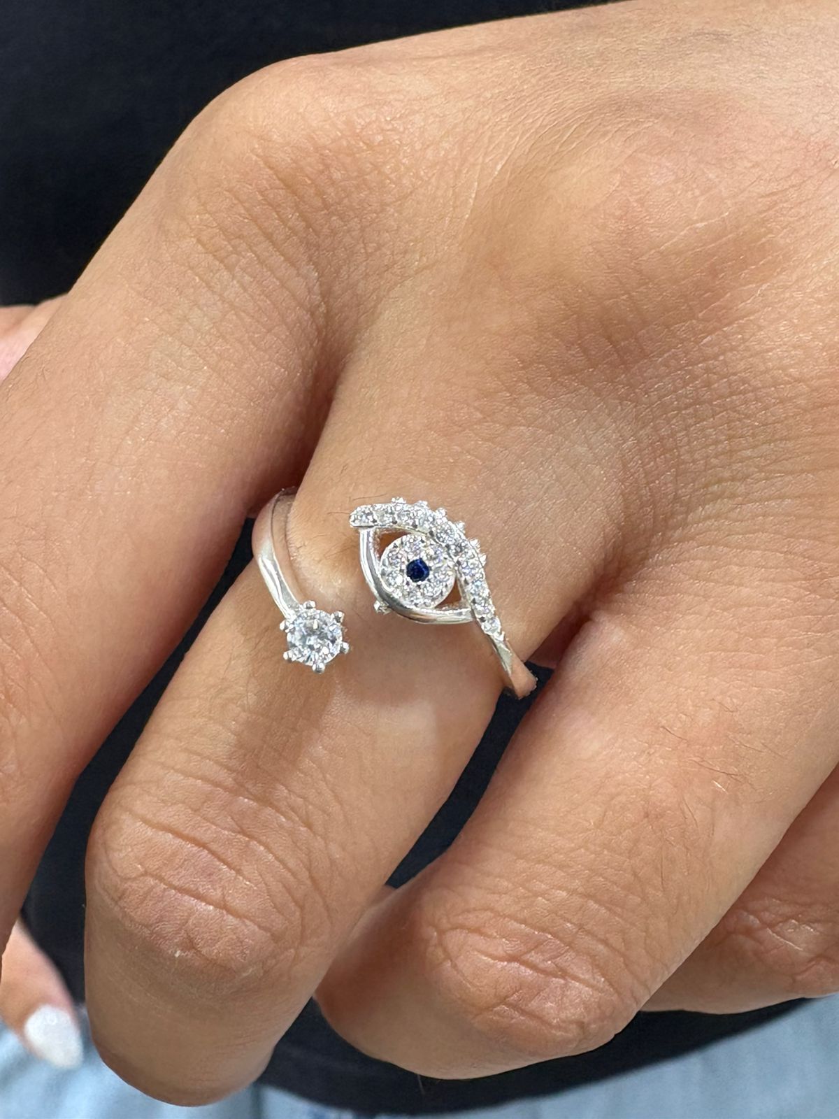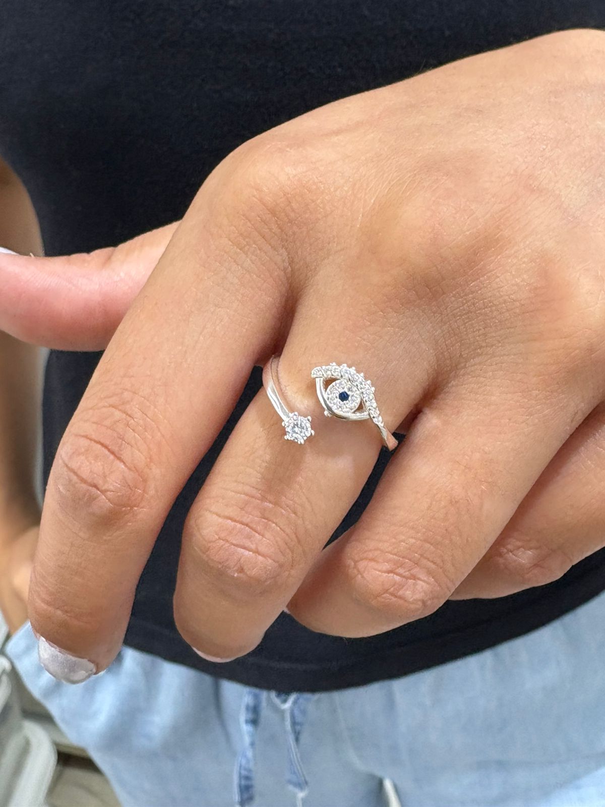 Descripción: Anillo de plata rodinada italiana con piedras llamadas cubics las cuales estan engarzadas.