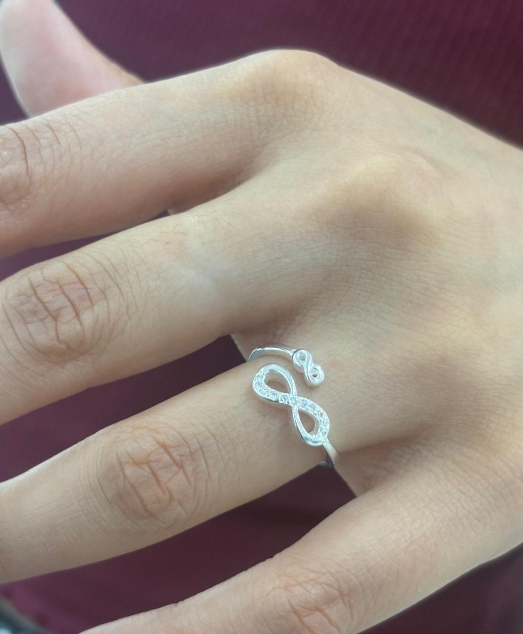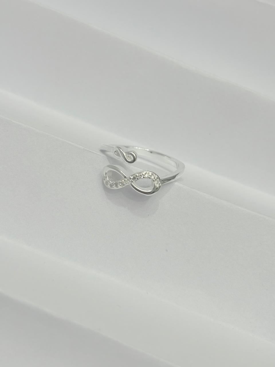 Descripción: Anillo de plata rodinada italiana modelo infintos calados y detalles de piedra llamada cubics la cual esta engarzada.
