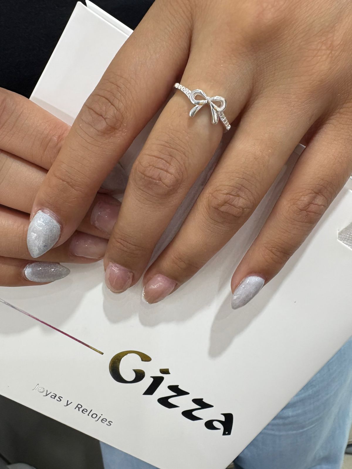 Descripción: Anillo de plata modelo moño con detalles de piedras llamadas cubics las cuales estan engarzadas.
