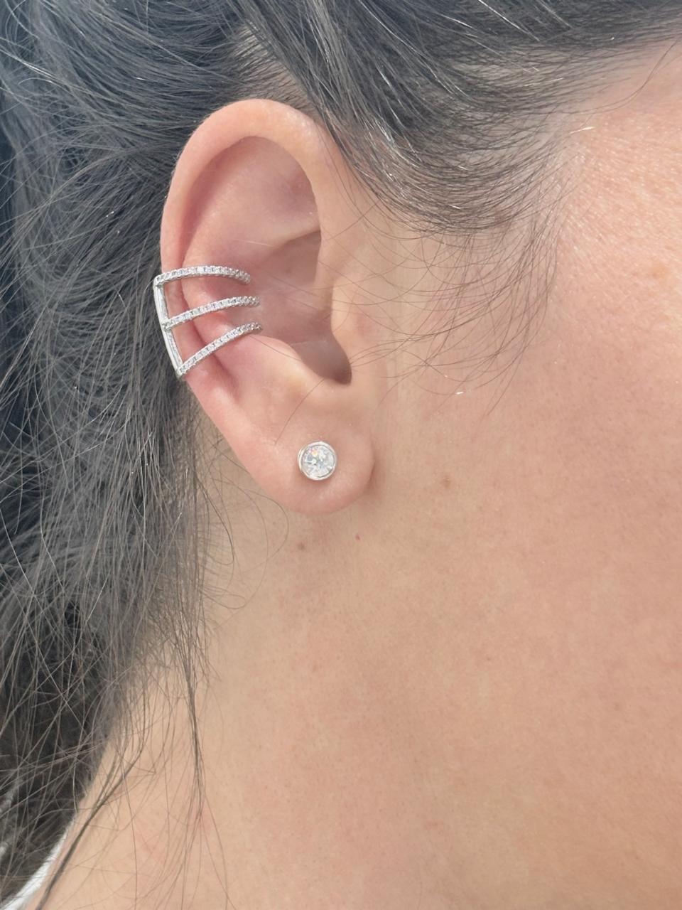 ARO DE PLATA RODINADA MODELO CUFF CON PIEDRAS