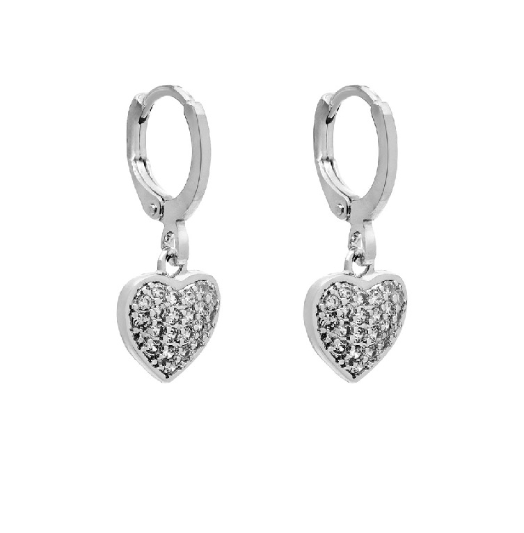 Descripción: Aros de acero blanco modelo corazón colgante con detalles de strass los cuales estan pegados.