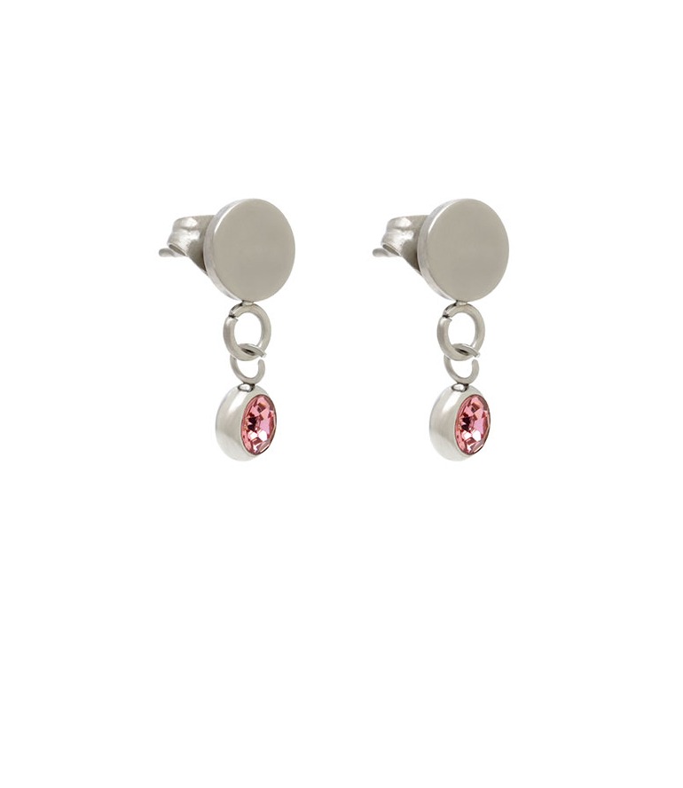 Modelo: Aros de acero modelo colgante con strass color rosa pegado.
