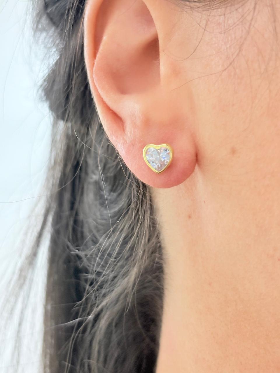 Descripción: Aros de plata con oro modelo corazón de 7mm con piedra cubics color blanco(engarzada).