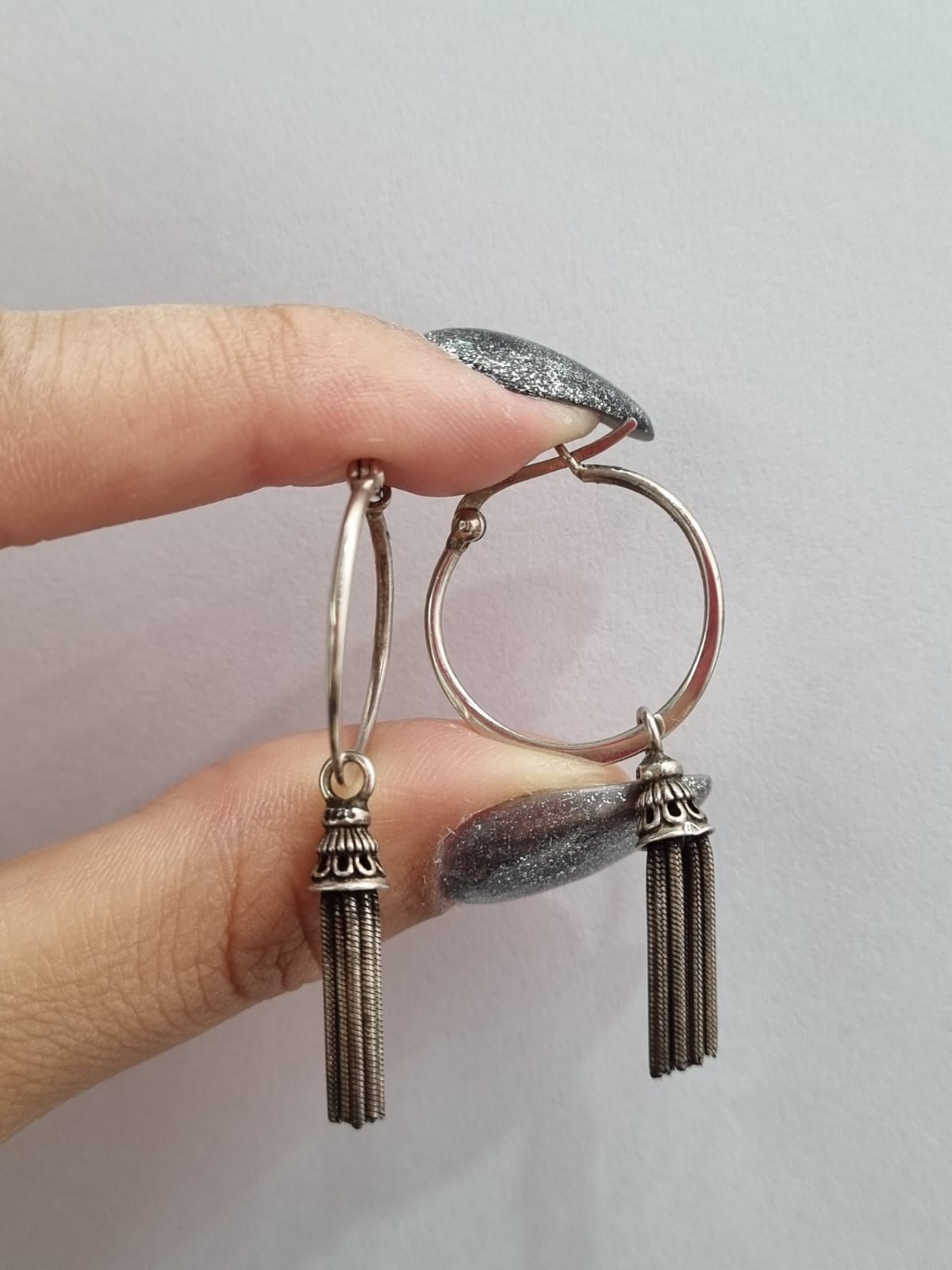 AROS DE PLATA LINEA HINDU MODELO CUBANO CON COLGANTE