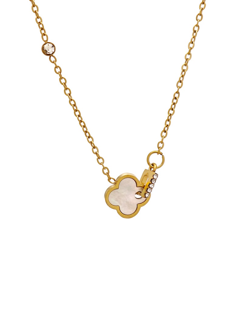 Descripción: Conjunto con dije trébol tamaño chico con detalle de strass y simil nacar.