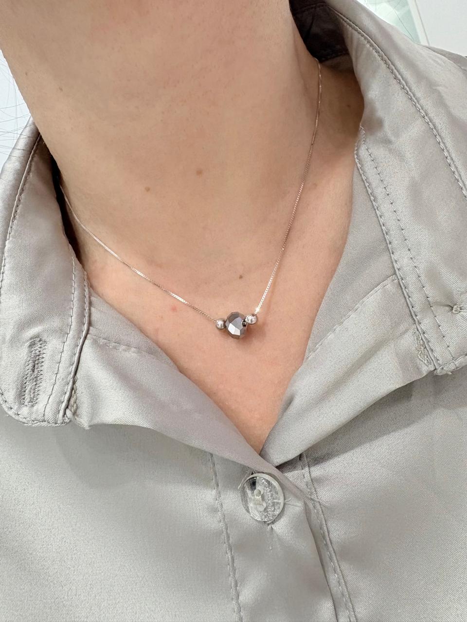 Descripción: Conjunto de cadena en plata 925 combinados con dije DONA facetada (7mm) de cristal europeo color gris.