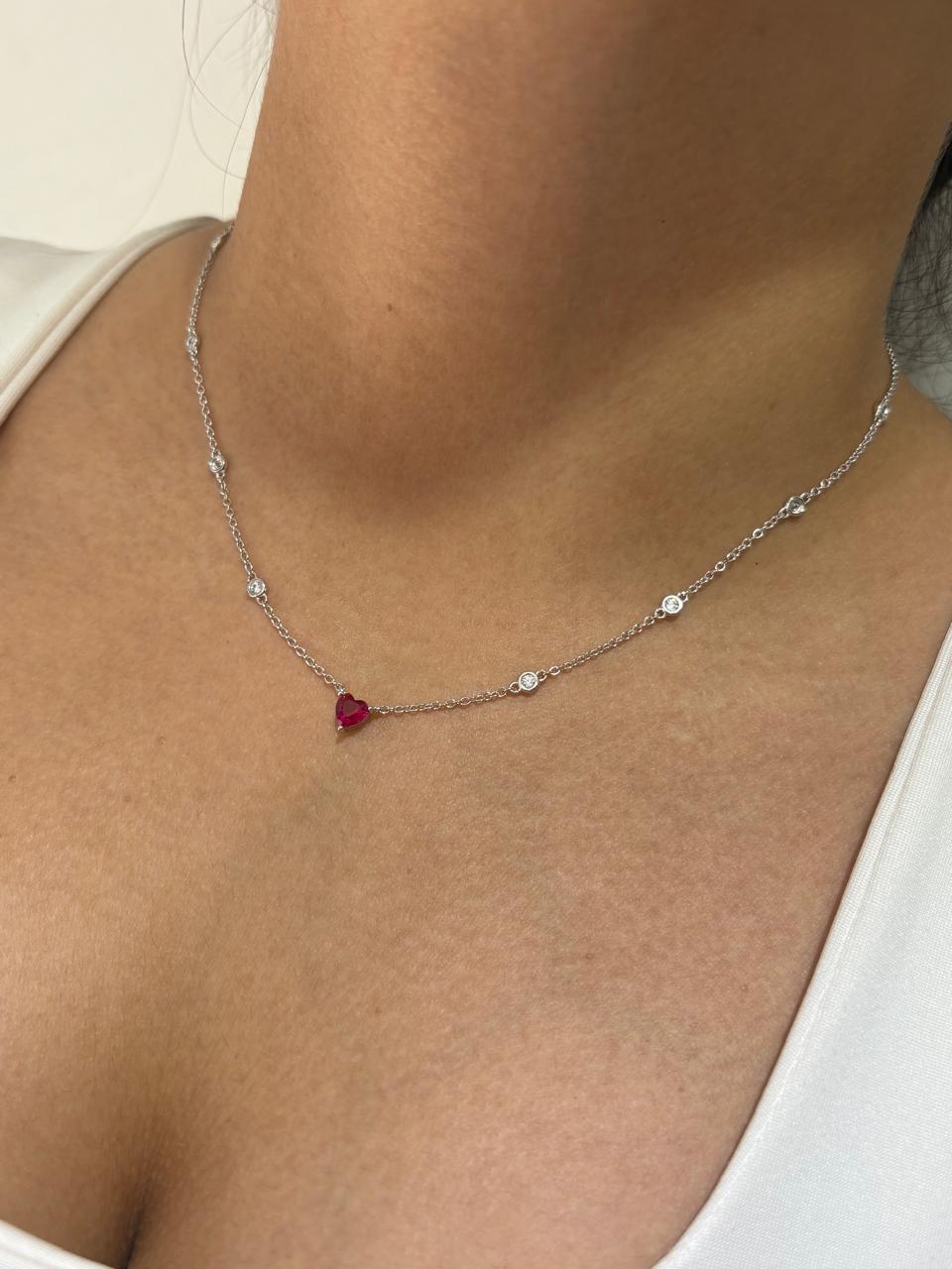 Modelo: Gargantilla con cubics blancos intercalados y corazón cubics engarzado color fucsia.