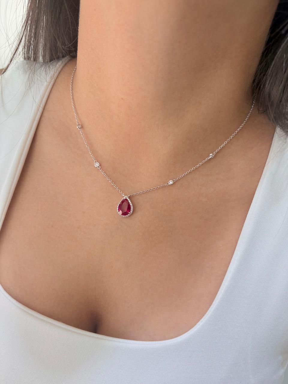 Modelo: Gargantilla con cubics blancos intercalados y gota cubics engarzado color rojo.