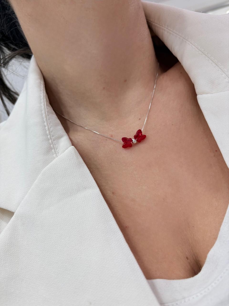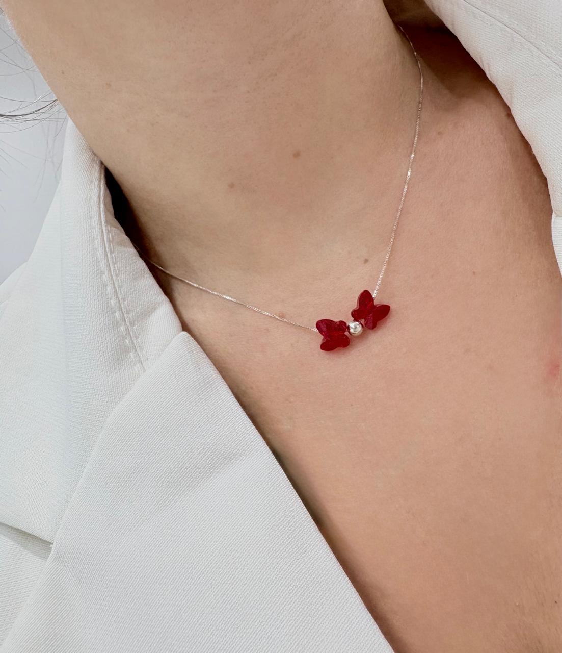 Descripción: Conjunto de cadena en plata 925 combinados con dije MARIPOSAS (7mm) de cristal europeo color rojo.