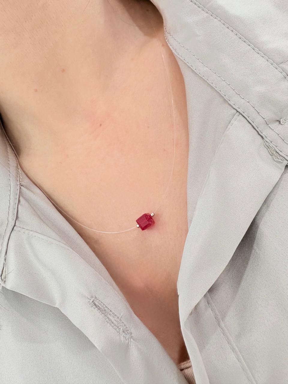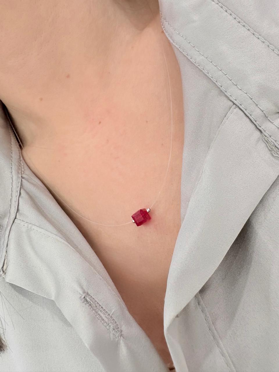 Diseño: Conjunto de tanza con cristal europeo diseño CUBO de 5mm color rojo y detalles de esferas tamaño pequeño de plata 925.
