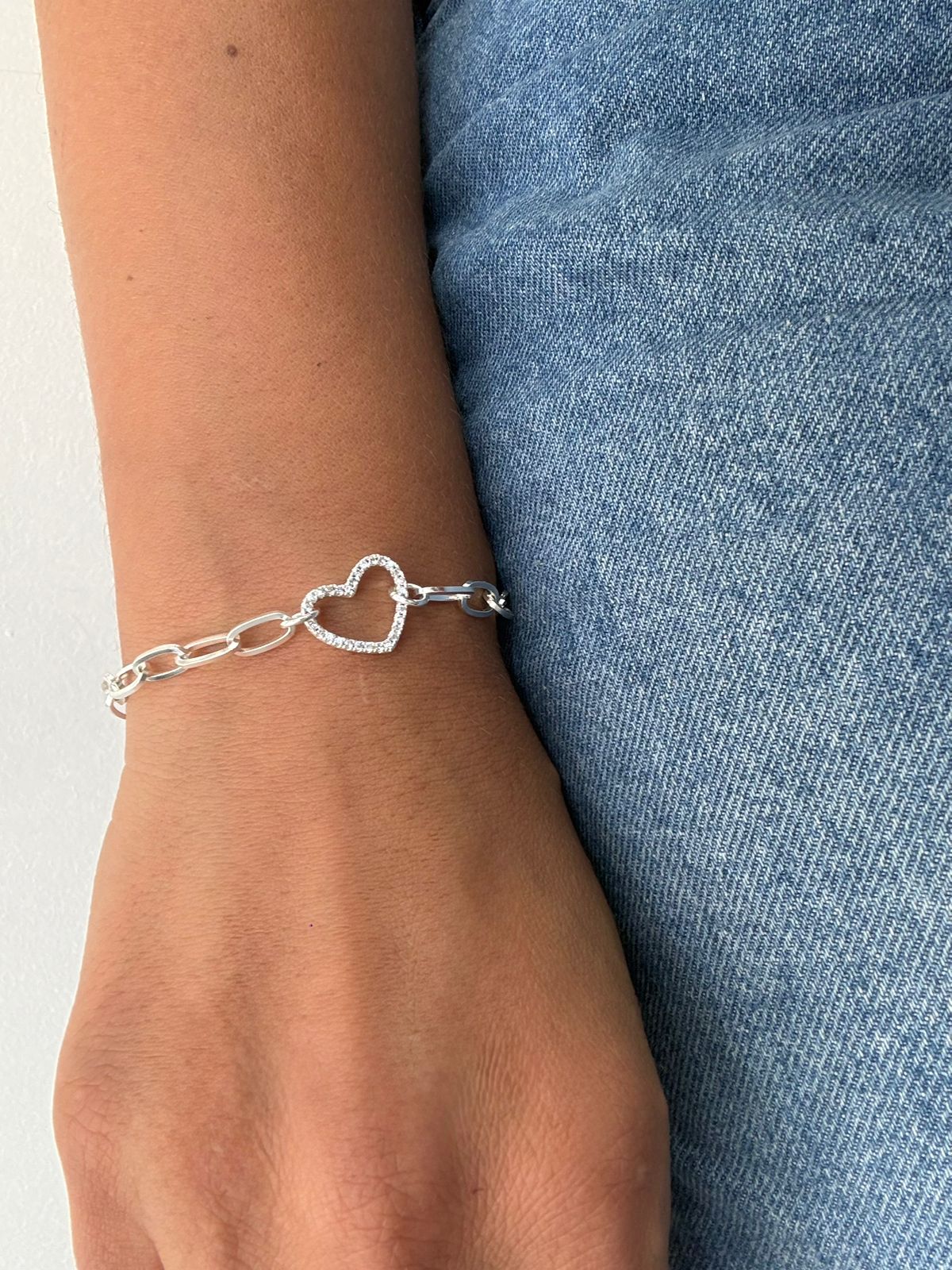 Modelo: Pulsera con dije central corazón calado con strass pegados.