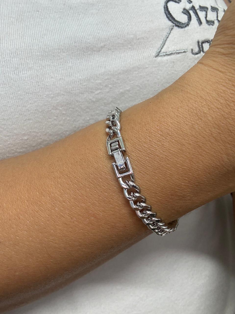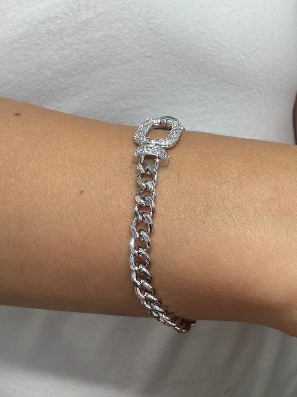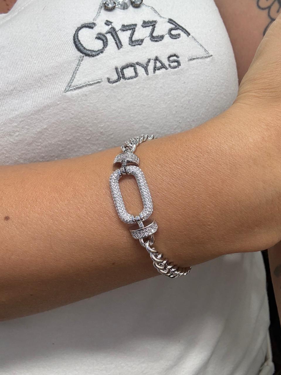 Modelo: Pulsera diseño ancho con detalle de rectangulo central con strass pegados.