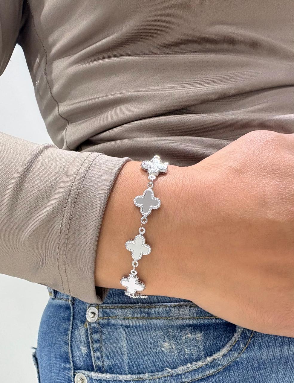 Modelo: Pulsera diseño treboles con simil espejitos.
