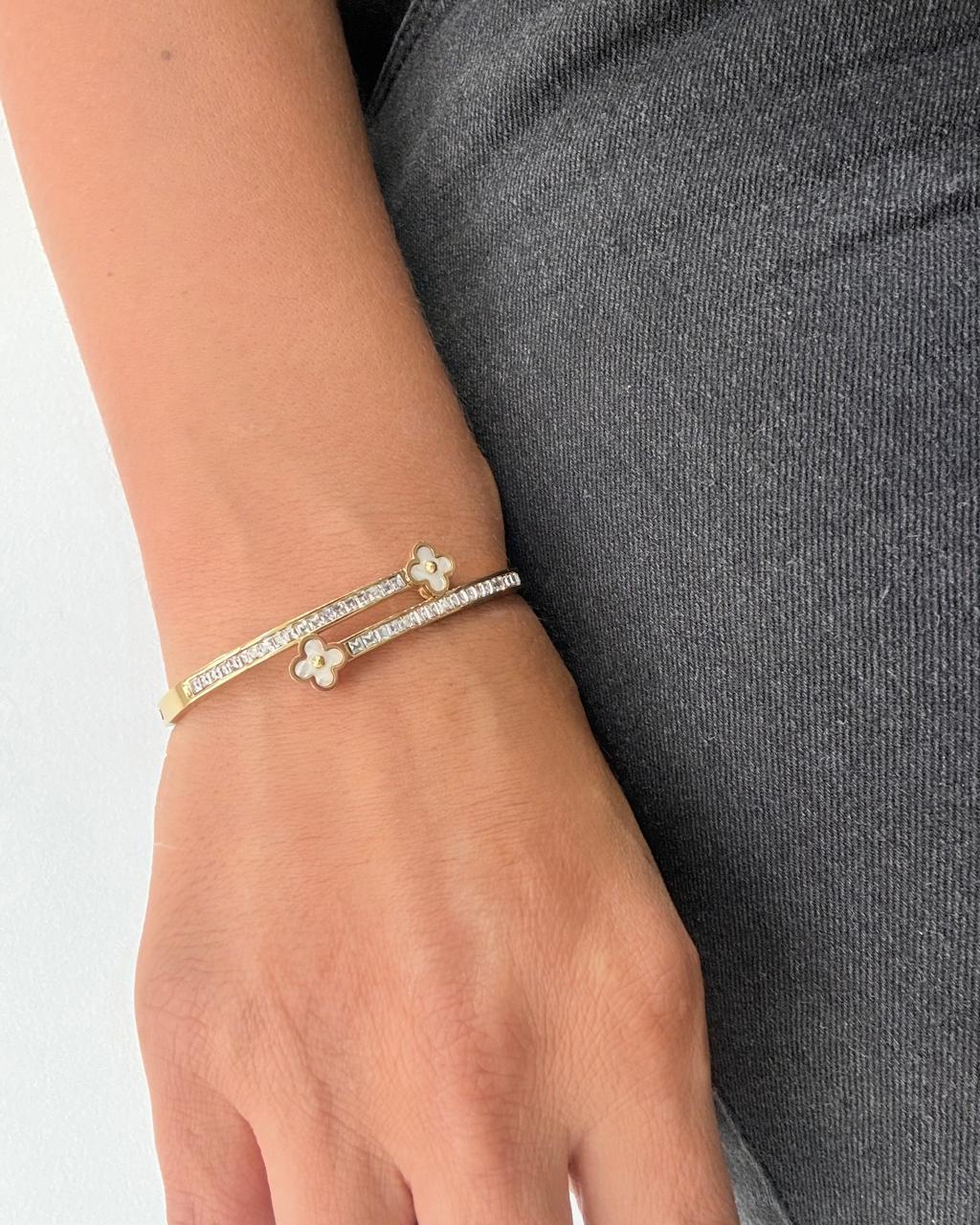 Modelo: Pulsera diseño esclava con dijes treboles.