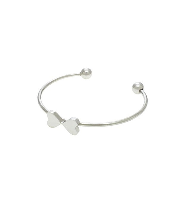 Diseño:Pulsera modelo esclava abierta con dijes corazones lisos.