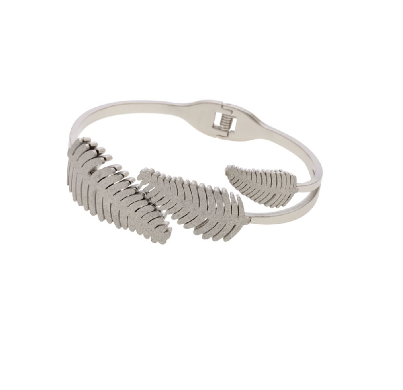Descripción: Pulsera de acero modelo esclava con diseño de hojitas arenadas.