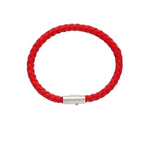 PULSERA ROJA DE CUERINA Y ACERO ,20CM