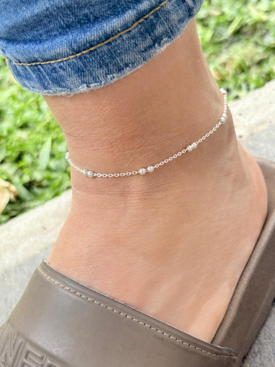 Modelo: Tobillera con tramado forcet y esferas intercaladas.