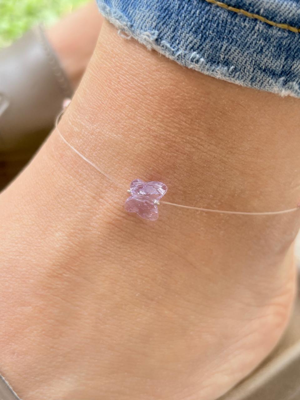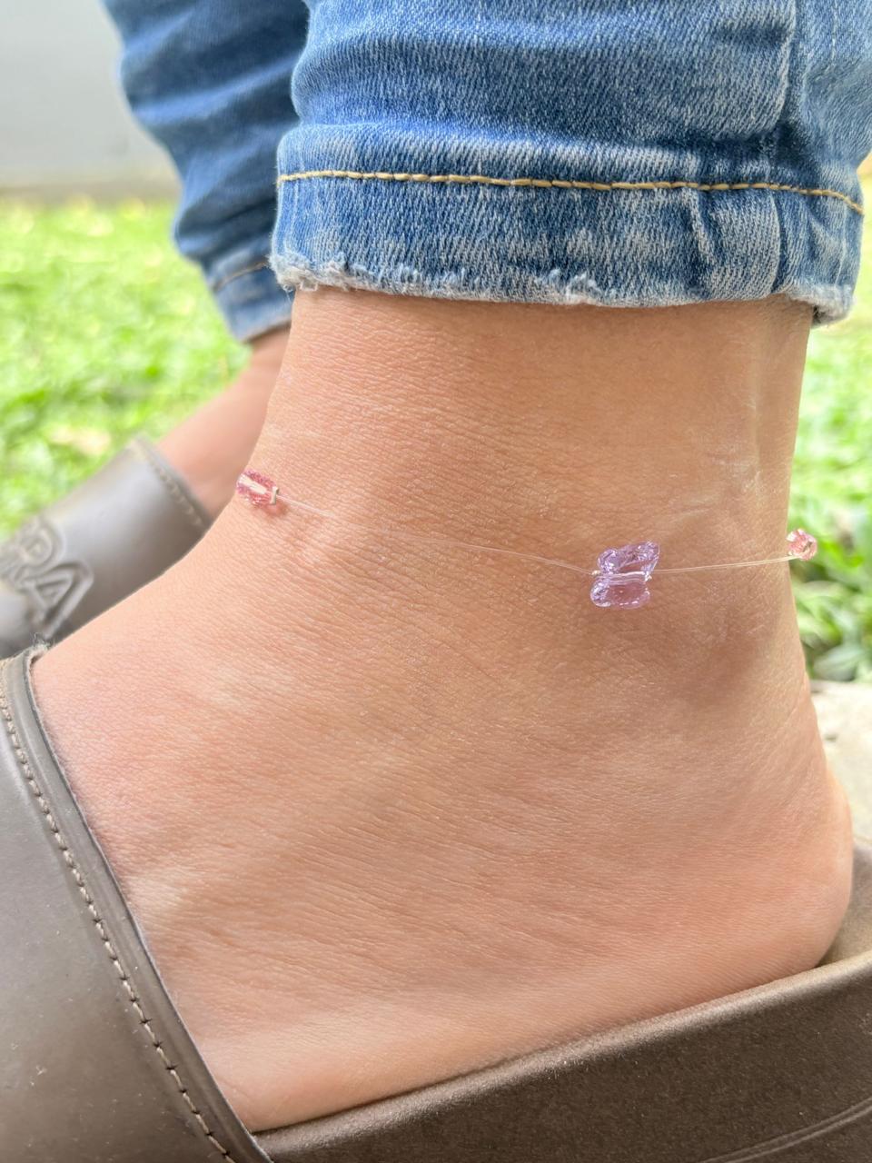 Modelo: Tobillera con dije mariposa y cristales pasantes.